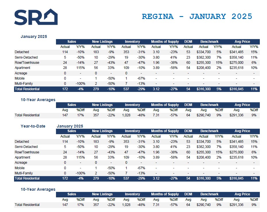 Following a record-breaking sales year in 2024, the City of Regina reported 172 sales in January, down four percent year-over-year but 17 percent above long-term, 10-year trends.